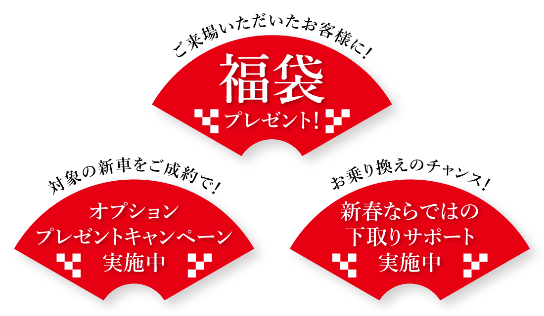 ※福袋は数に限りがございます。品切れの際はご容赦ください。※オプションプレゼントキャンペーンの対象車種につきましては、営業スタッフにお尋ねください。