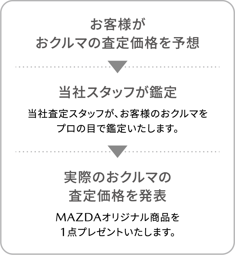 期間中にご来店いただき、お客様ご自身で愛車の査定価格を予想して、
