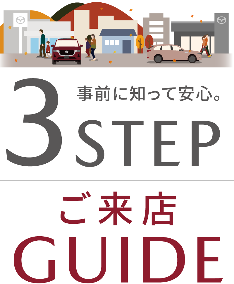 そんな思いを胸に、南九州マツダでは、“事前に知って安心”の3STEPをご案内させていただきます。